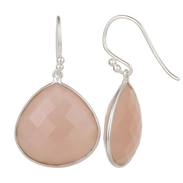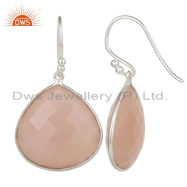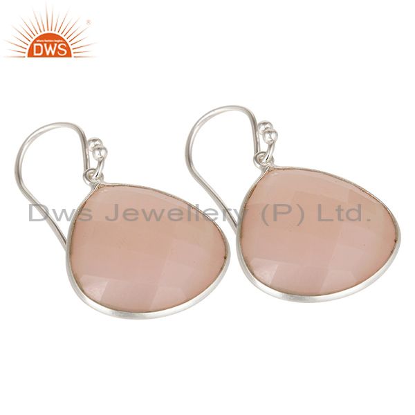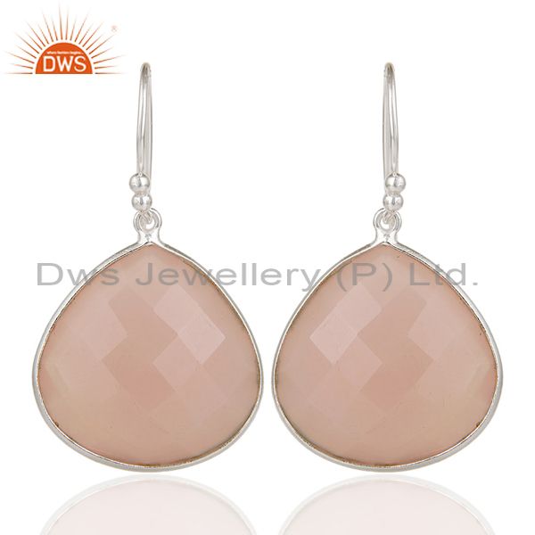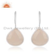 Mind Blowing Solid Sterling Silver Rose Chalcedony Bezel Set Drop Earrings