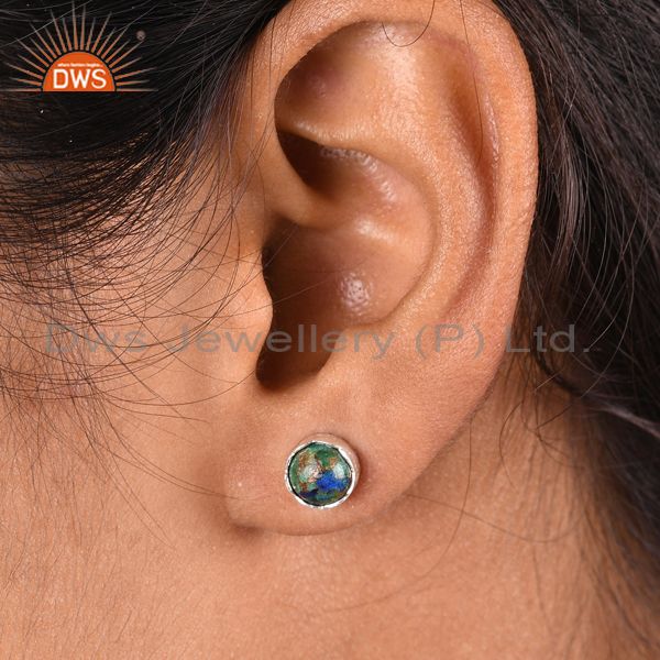 Mojave Copper Azurite Malachite Set Fine 925 Silver Earrings
