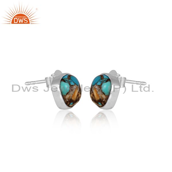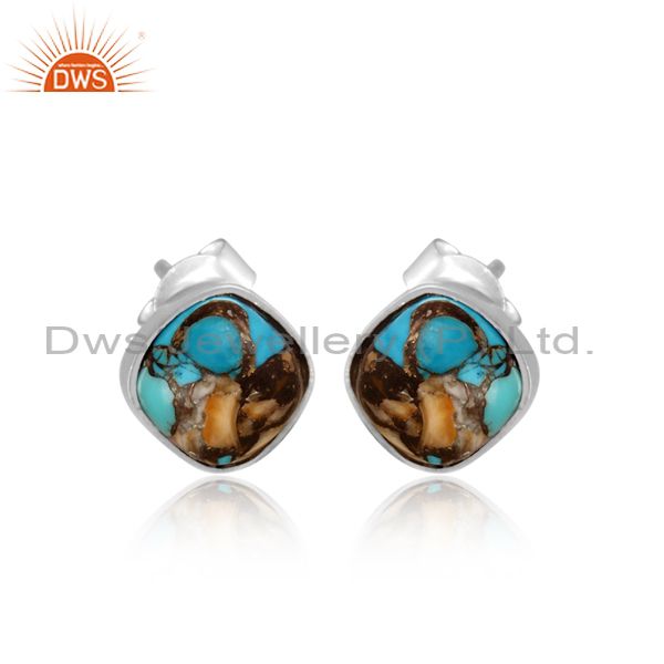 Mojave copper oyster turquoise set fine 925 silver earrings