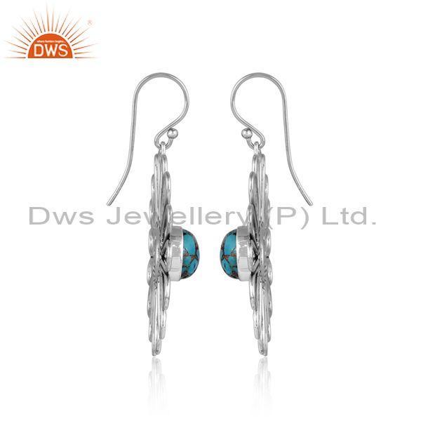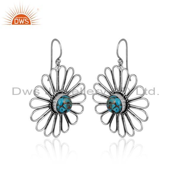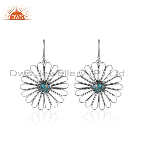 Mojave Copper Turquoise Set Oxidized Silver Floral Earrings