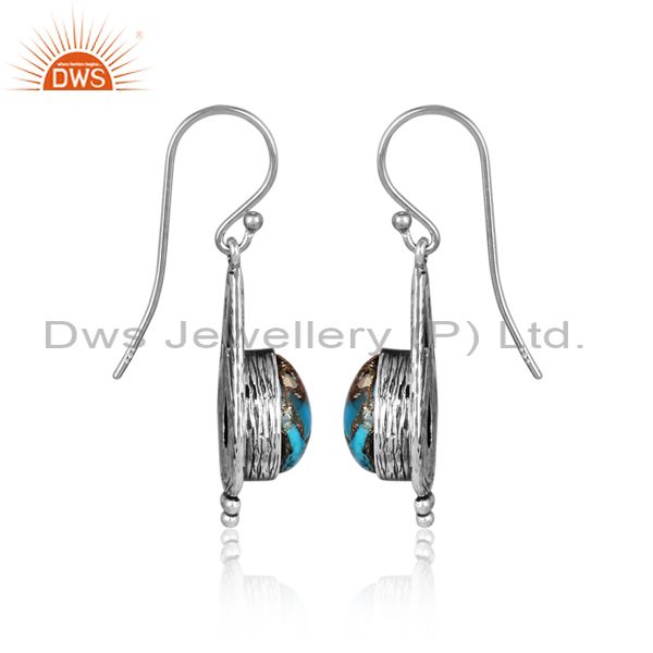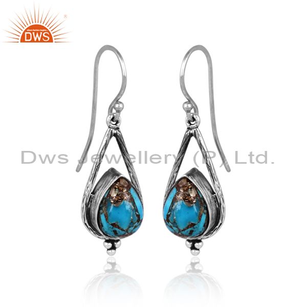 Mojave Copper Turquoise Set Oxidized Silver Long Earrings