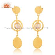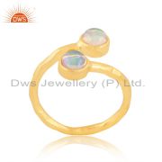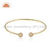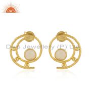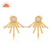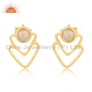 Moon Design Yellow Gold Plated Silver Ethiopian Opal Stud Earrings