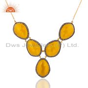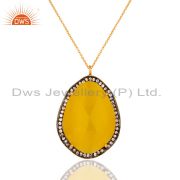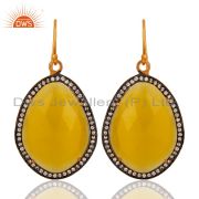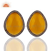 Moonstone Yellow Gemstone Large Stud Earrings With CZ Made in 24k Gold On Silver