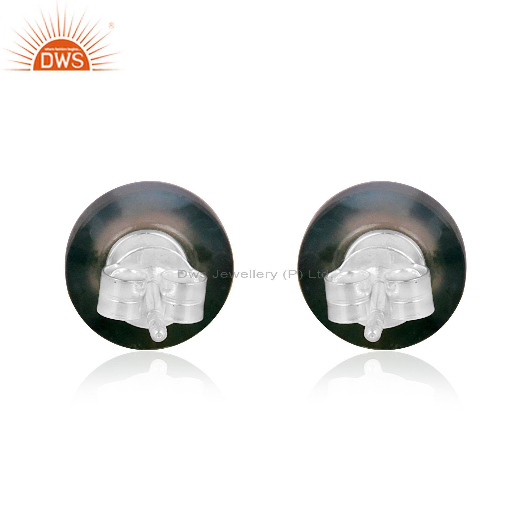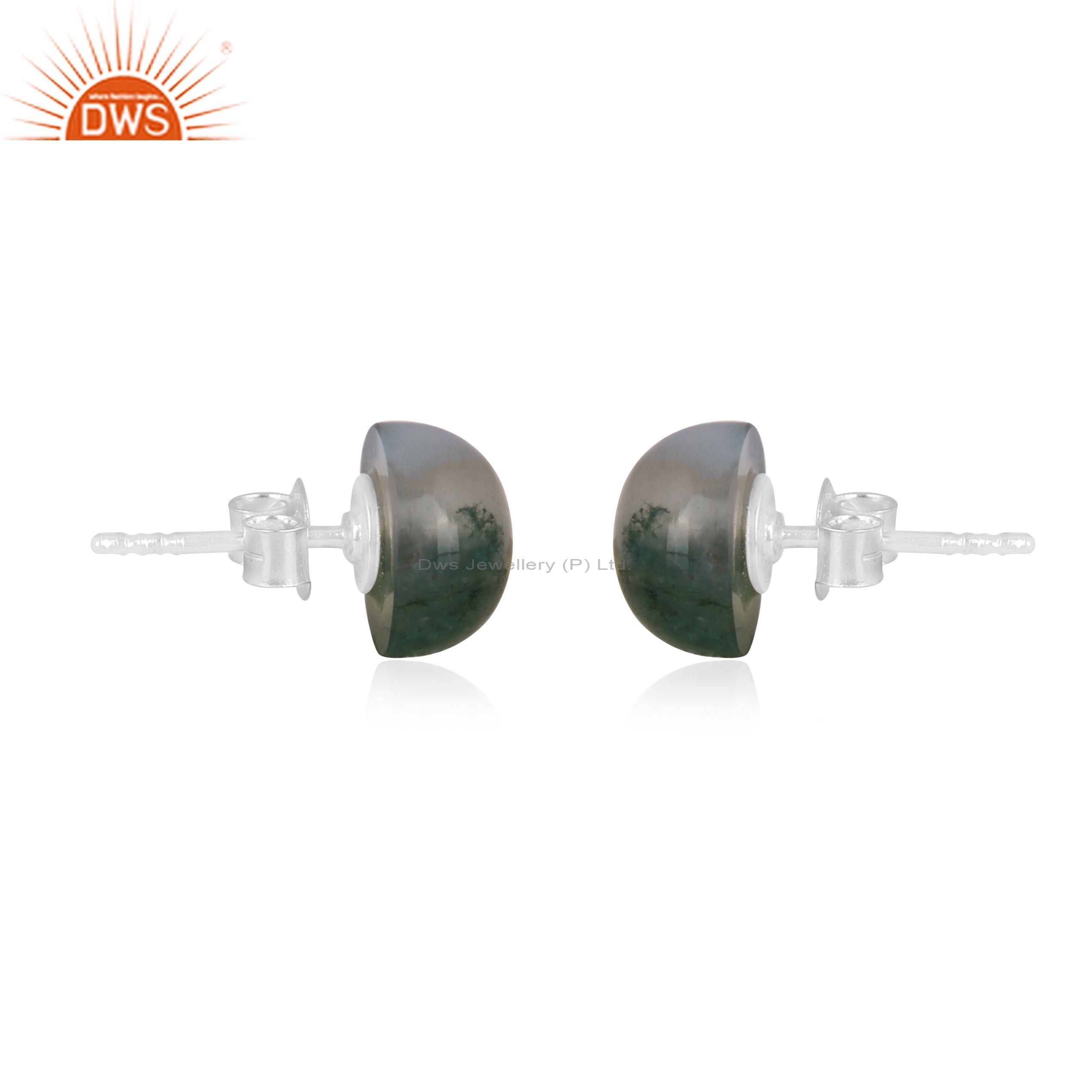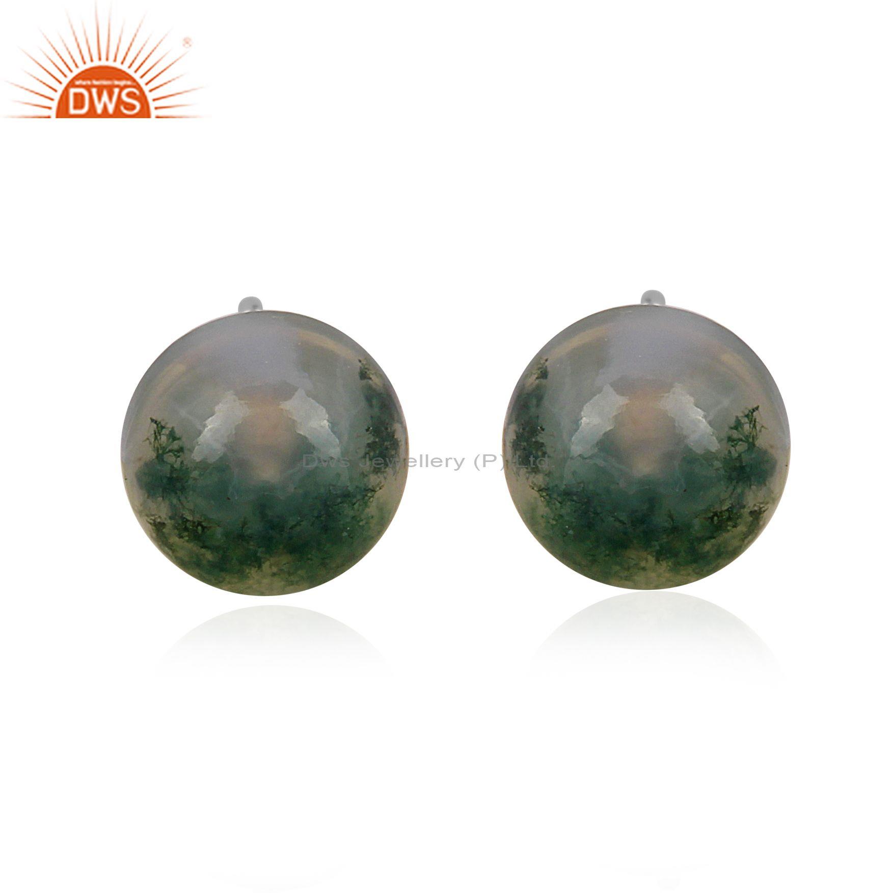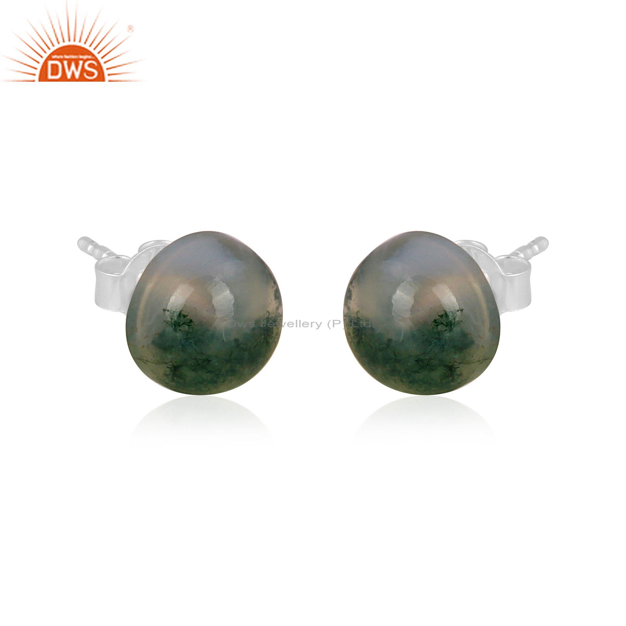 Moss Agate Set Fine Sterling Silver Classic Round Earrings