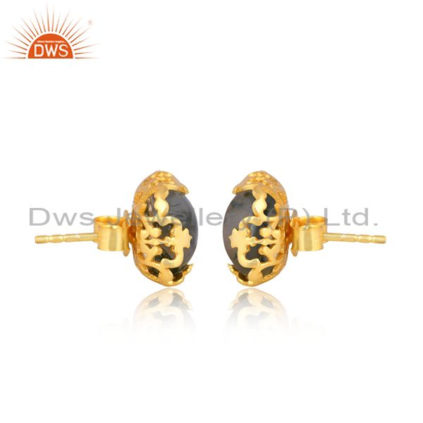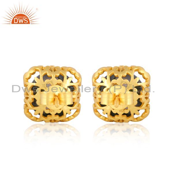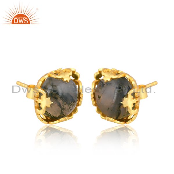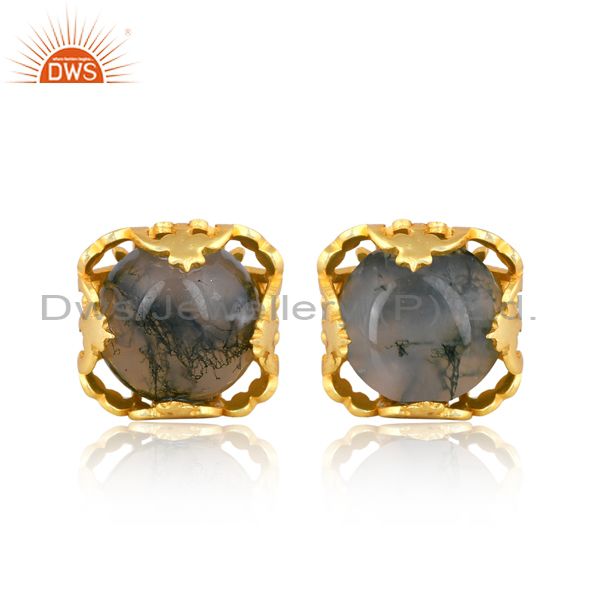 Moss Agate Set Gold On 925 Sterling Silver Square Earrings