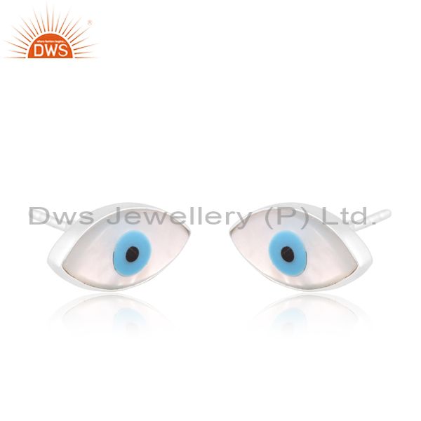 Mothe Of Pearl Eye White Sterling Silver Earring