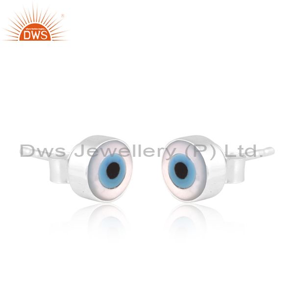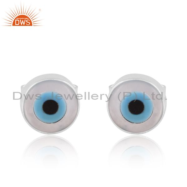 Mother Of Pearl Eye Round With White Sterling Silver Earring