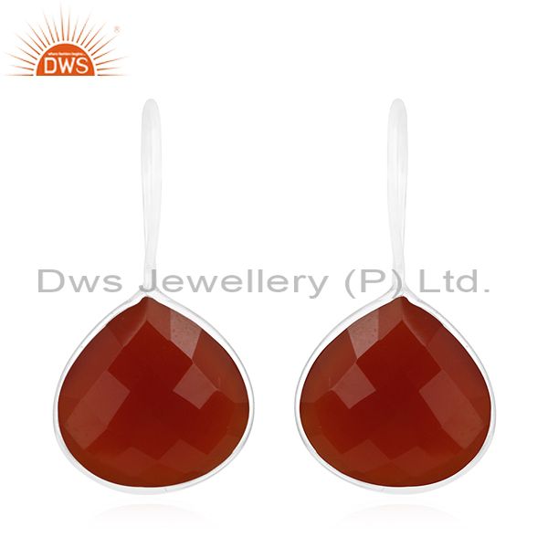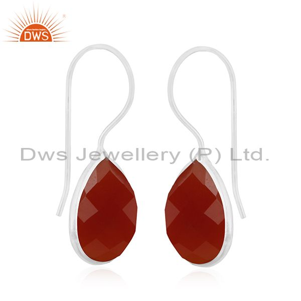 Multi Cheker Board Red Onyx Gemstone 925 Silver Drop Earrings Wholesale
