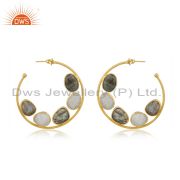 Multi Gemstone 14K Gold Plated Brass Fashion Hoop Round Earrings Wholesaler