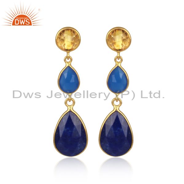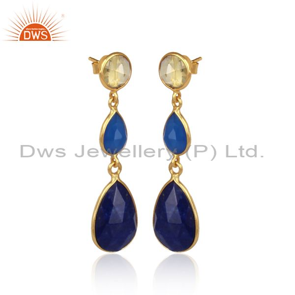 Multi Gemstone 925 Silver Gold Plated Earring Wholesale Wedding Jewelry