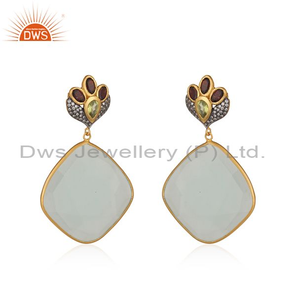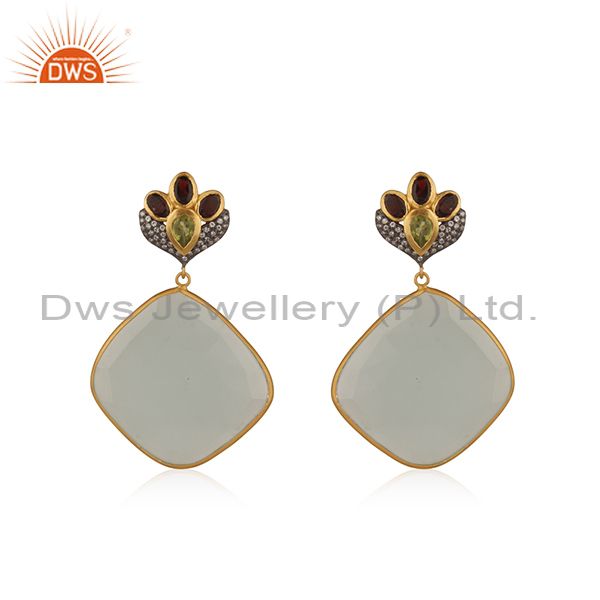 Multi Gemstone Gold Plated Brass Fashion Earrings Manufacturers India