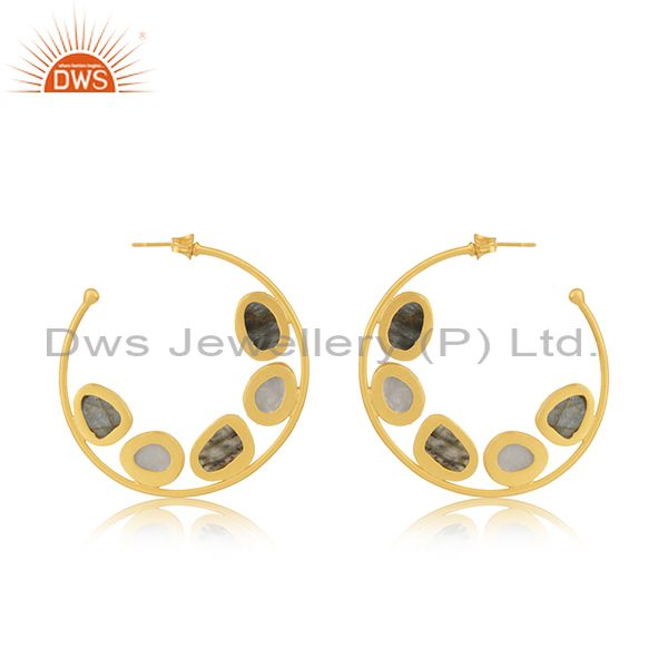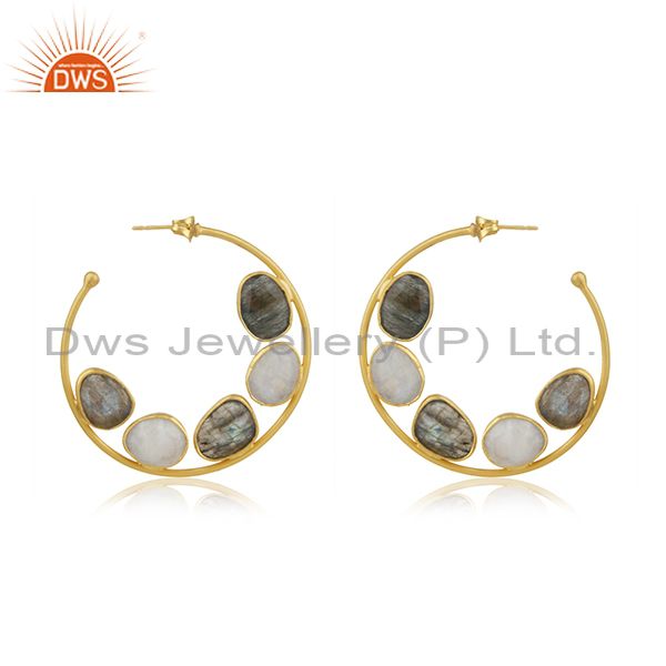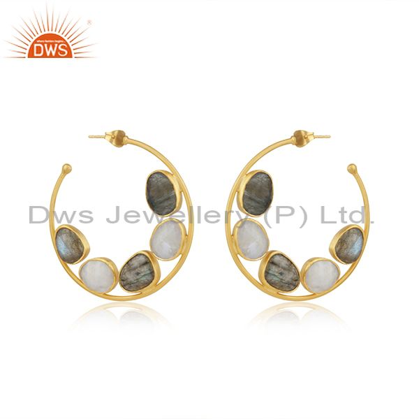 Multi Gemstone Gold Plated Brass Fashion Hoop Earrings Manufacturer Jaipur