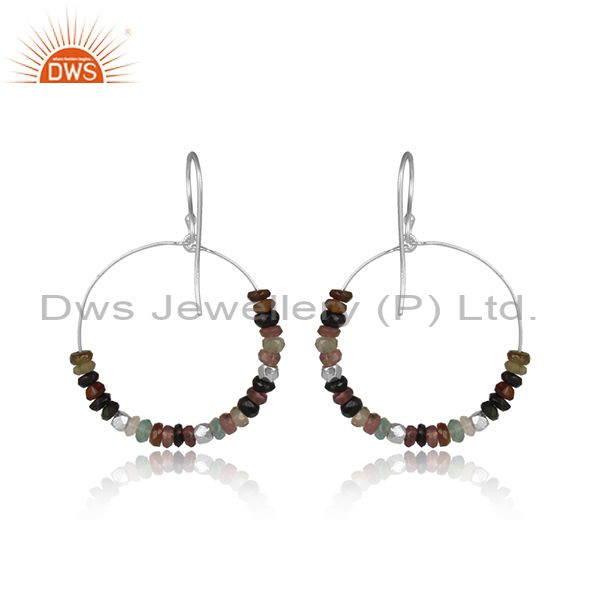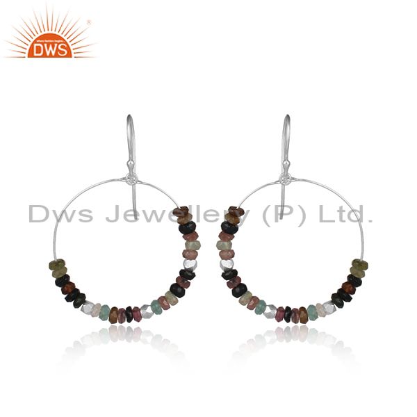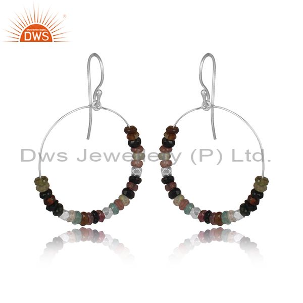 Multi Tourmaline Beads Set Sterling Silver Hoop Earrings