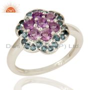 Natural Amethyst And London Blue Topaz Sterling Silver Cluster Dangle Earrings