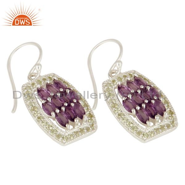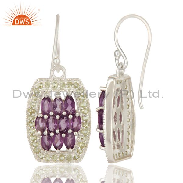 Natural Amethyst And Peridot Sterling Silver Solitaire Dangle Earrings