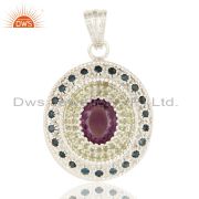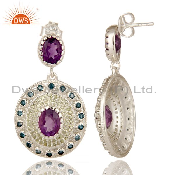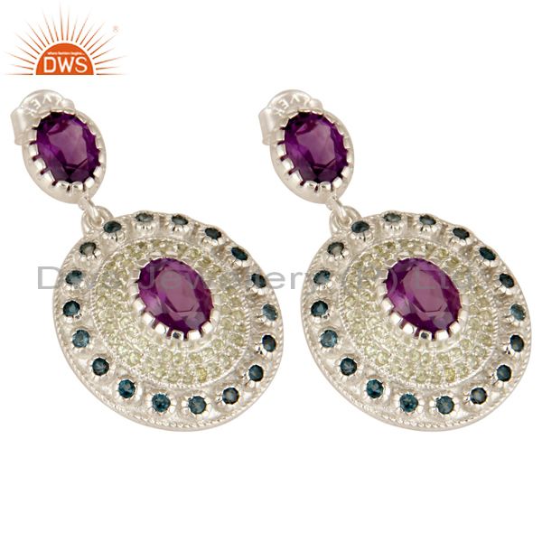 Natural Amethyst, Blue Topaz And Peridot Sterling Silver Gemstone Dangle Earring