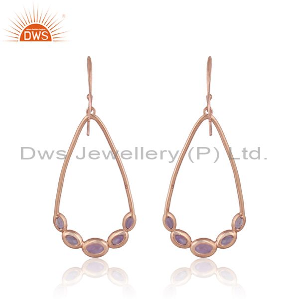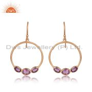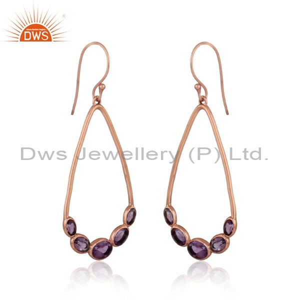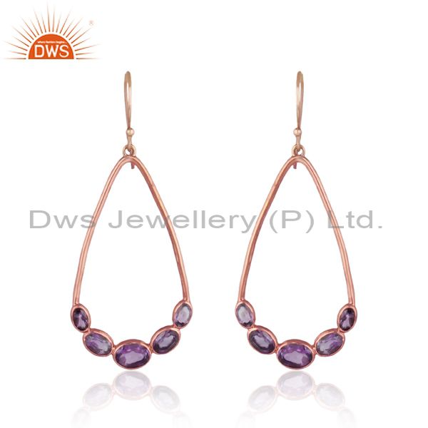 Natural Amethyst Gemstone Rose Gold on Silver Designer Earrings