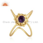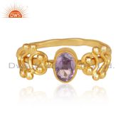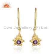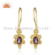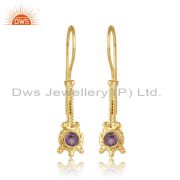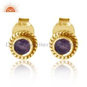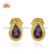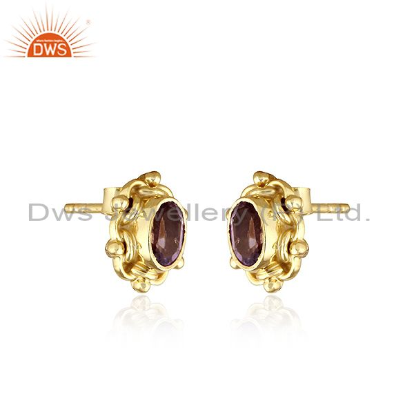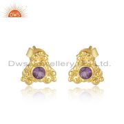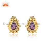 Natural Amethyst Gold Plated 92.5 Silver Designer Stud Earrings