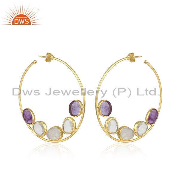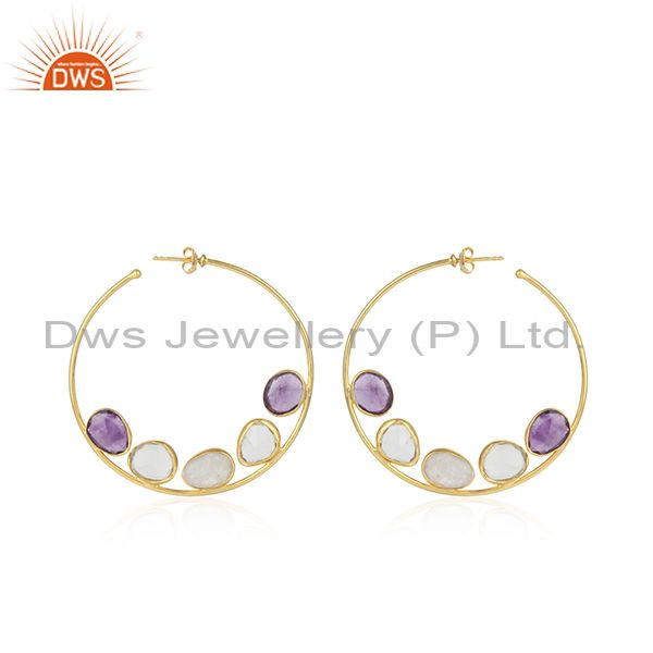 Natural Amethyst Rainbow Moonstone Gemstone Hoop Earrings Jewelry