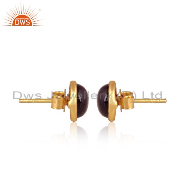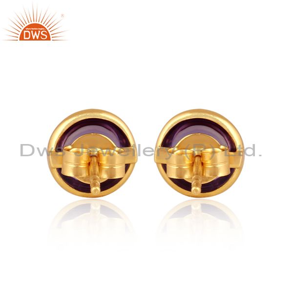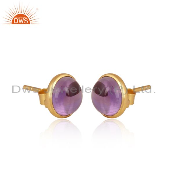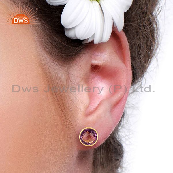 Natural Amethyst Studs 8Mm Gold Plated 92.5 Sterling Silver Post Jewelry