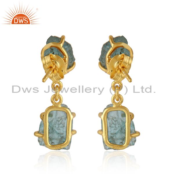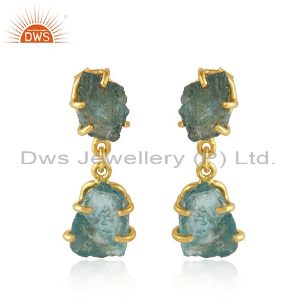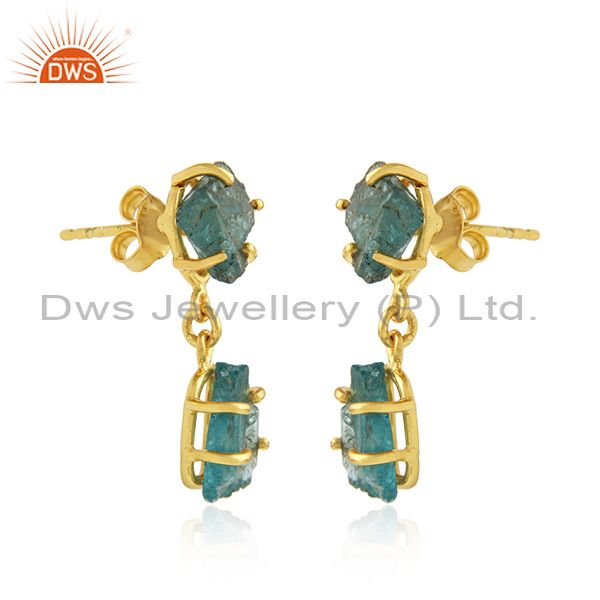 Natural Apatite Yellow Gold Plated Silver Dangle Earrings Jewelry