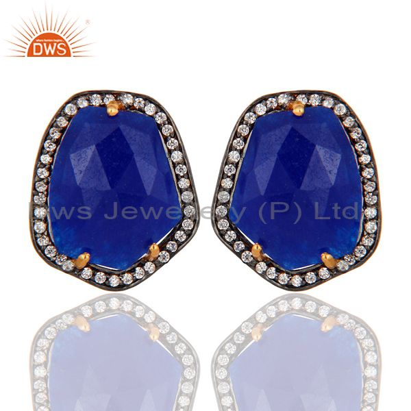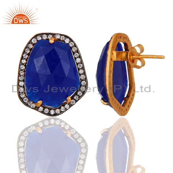 Natural Aventurine & White Zirconia Studs Brass Earrings Made In 14K Solid Gold