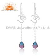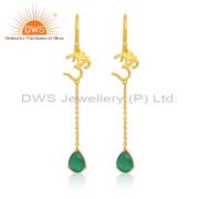 Natural Aventurine Gemstone Sterling Silver OM Dangle Earrings Jewelry