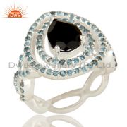 Natural Black Onyx And Blue Topaz Sterling Silver Hook Dangle Earrings