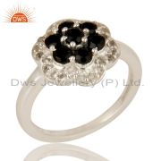 Natural Black Onyx And White Topaz Cluster Sterling Silver Dangle Earrings
