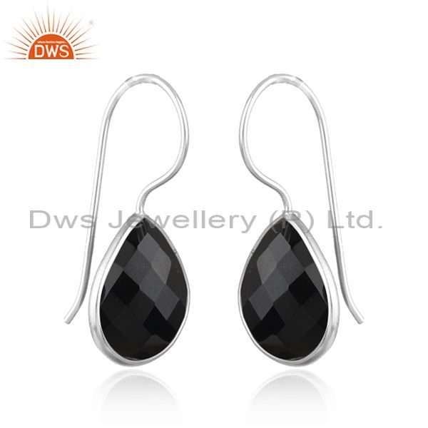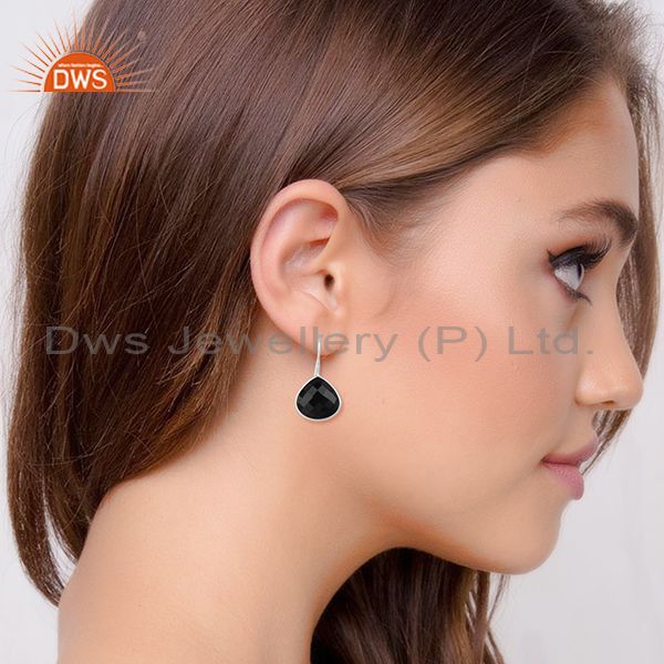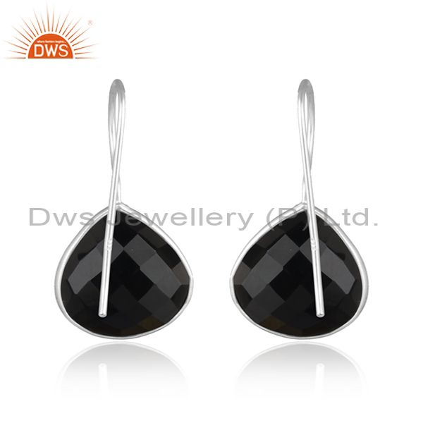 Natural Black Onyx Gemstone Designer Fine Silver Earrings Jewelry
