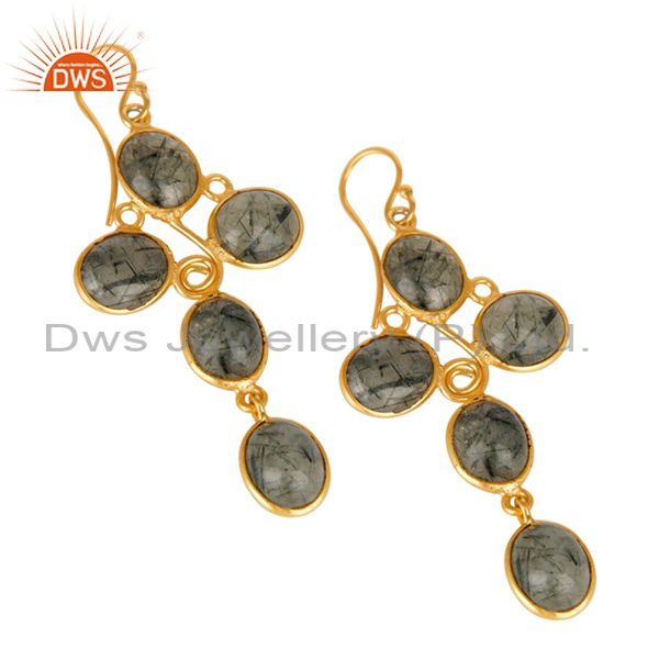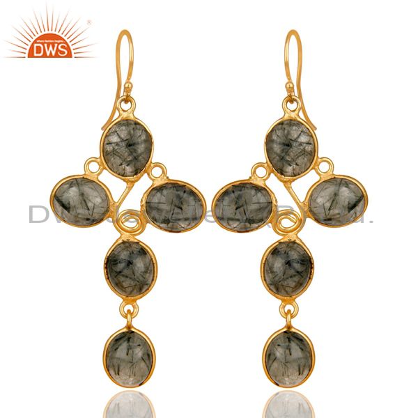 Natural Black Rutilated Quartz Earrings Made In 18K Gold Over Brass
