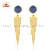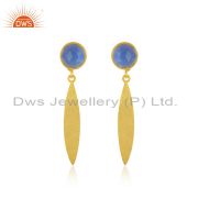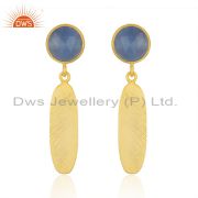 Natural Blue Chalcedony Gold Plated Silver Earrings Jewelry Wholesale