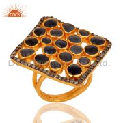 Natural Blue Sapphire And Pave Set Diamond 925 Silver Gold Plated Stud Earring