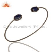 Natural Blue Sapphire Diamond Set Silver Stud Earrings Jewelry