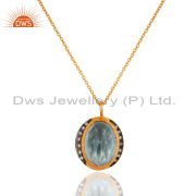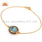 Natural Blue Topaz And Cz Sterling Silver With Gold Plated Dangle Earrings