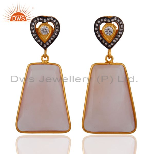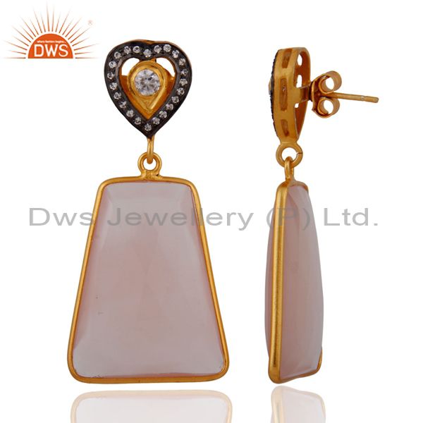 Natural Chalcedony Faceted Gemstone Bezel Drop Earring In Gold Plated On Silver