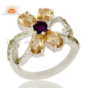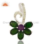 Natural Chrome Diopside, Peridot And Amethyst Sterling Silver Dangle Earrings