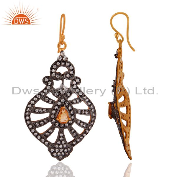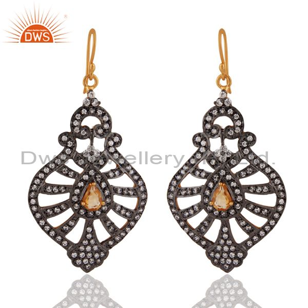 Natural Citrine & Cubic Zirconia Gemstone Gold Plated Earrings