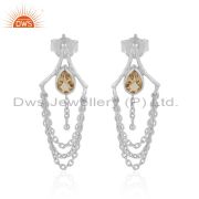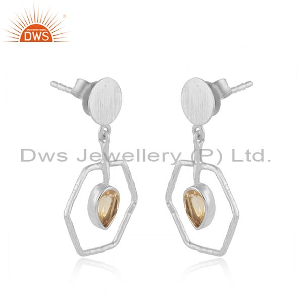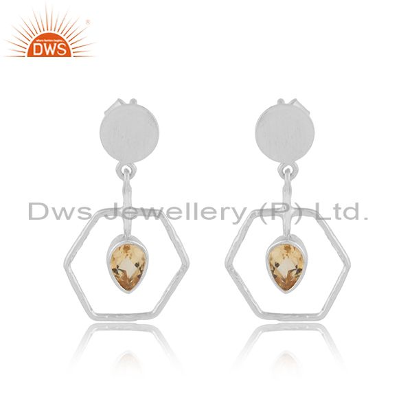 Natural Citrine Gemstone Handmade 925 Sterling Fine Silver Earring