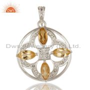 Natural Citrine Marquise Cut Gemstone Sterling Silver White Topaz Earrings