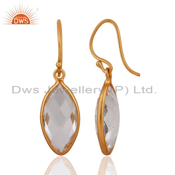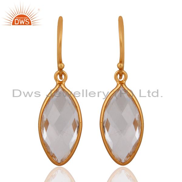 Natural Crystal Quartz Earring Solid Sterling Silver 925 Gold Plated Jewelry