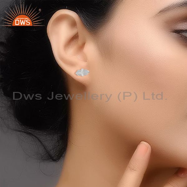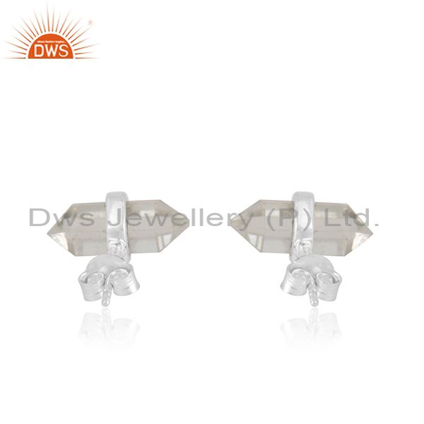 Natural Crystal Quartz Gemstone 925 Silver Tiny Stud Earrings Jewelry