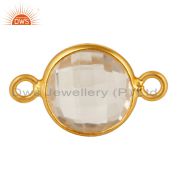 Natural Crystal Quartz Gemstone Dangle Earrings In 18K Gold Over Sterling Silver