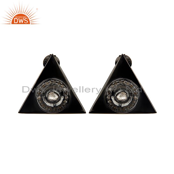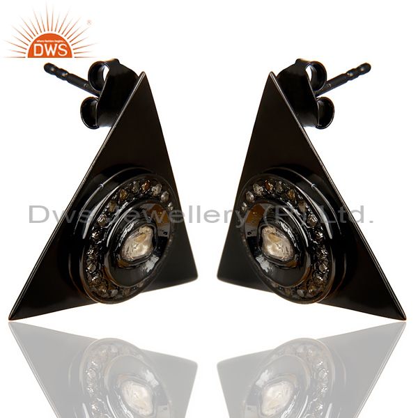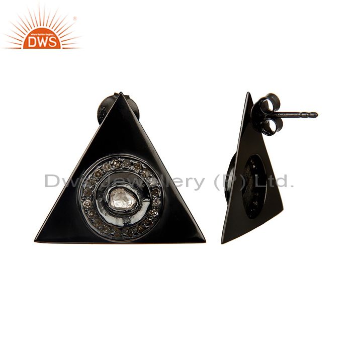 Natural Diamond 20 MM Triangle Stud Earring Black Rhodium Plated In Silver