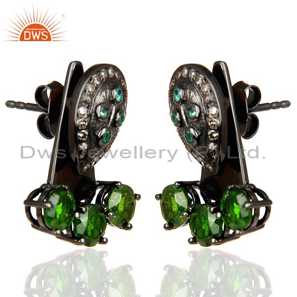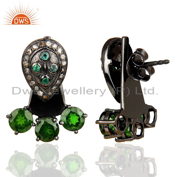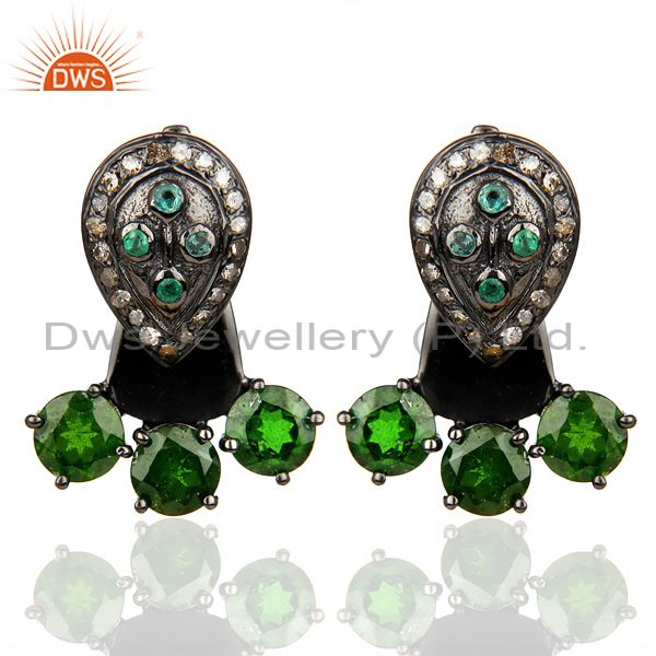 Natural Diamond And Chrome Diopside Double Jacket Earring,Two Way Earring