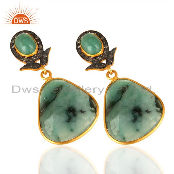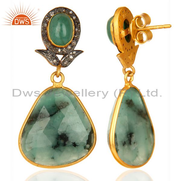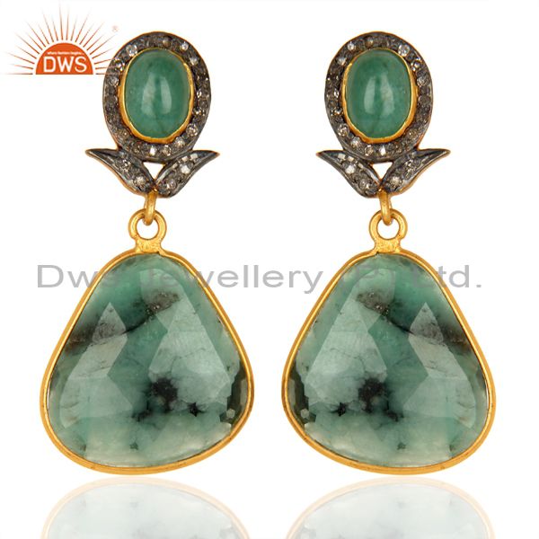 Natural Diamond And Emerald Dangle Earring,Large Emerald Earring