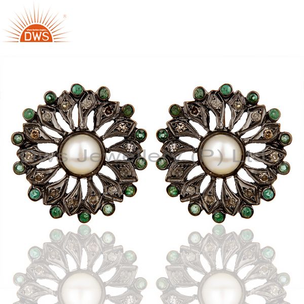 Natural Diamond Large June Birthstone Ear Stud,92.5 Sterling Silver Earring