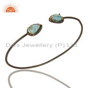 Natural Diamond Pave Set And Larimar Gemstone Stud Earrings In 14K Yellow Gold