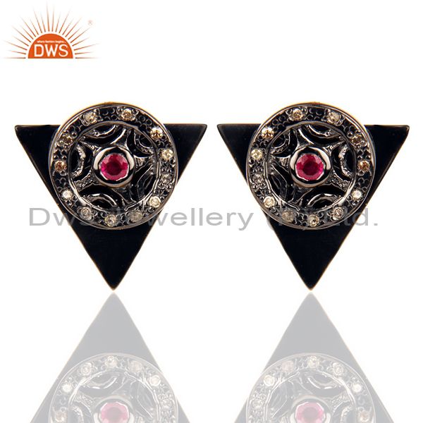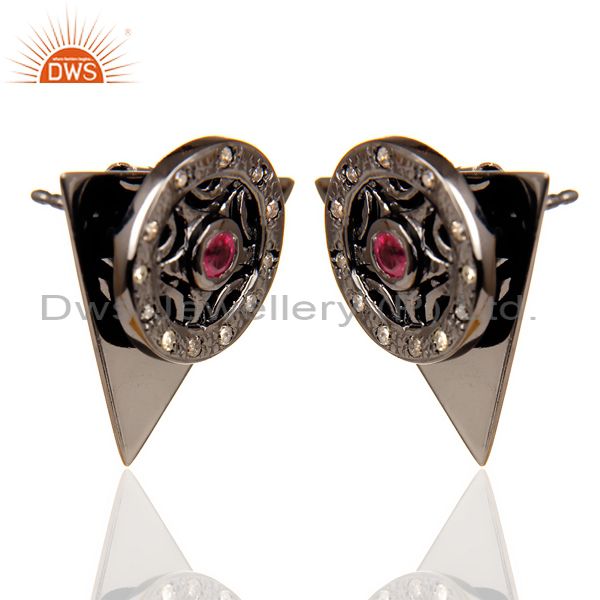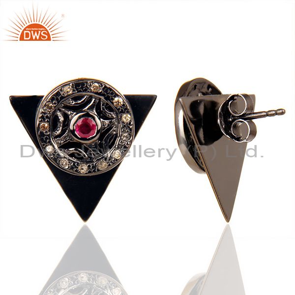 Natural Diamond Ruby Two Way Triangle Earring Black Rhodium Silver Earring