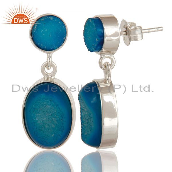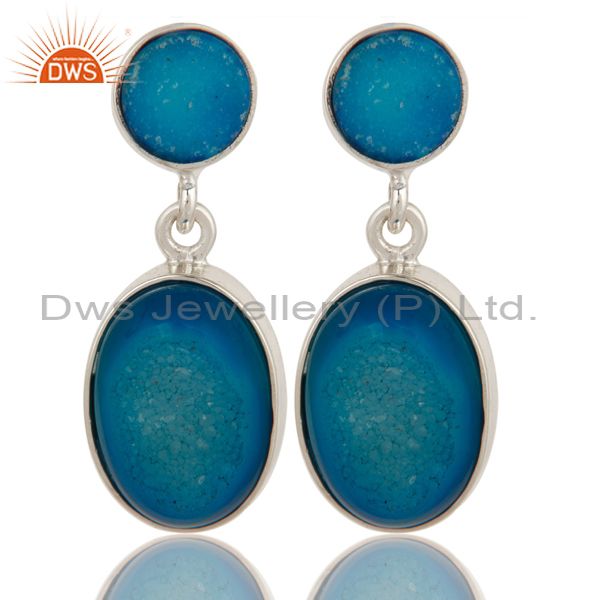 Natural Druzy Agate Sterling Silver Bezel-Set Dangle Earrings